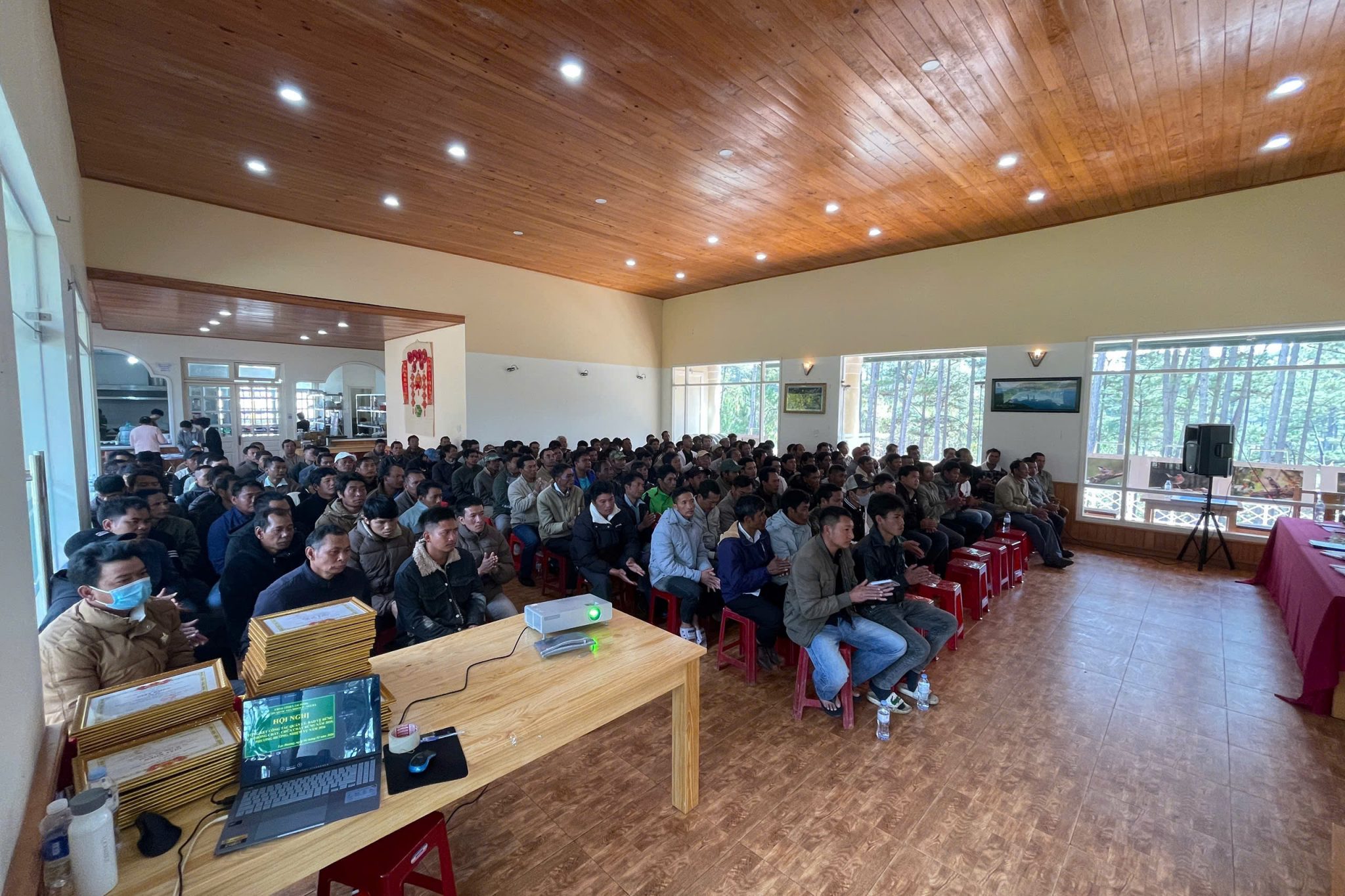 Tham dự hội nghị có Lãnh đạo Vườn quốc gia Bidoup – Núi Bà, đại diện các phòng chuyên môn, đơn vị trực thuộc; đại diện Hạt Kiểm lâm Bidoup – Núi Bà, UBND các xã, phường liên quan, cùng các Tổ trưởng, Tổ phó Tổ cộng đồng dân cư và các hộ nhận khoán bảo vệ rừng tiêu biểu trên địa bàn.